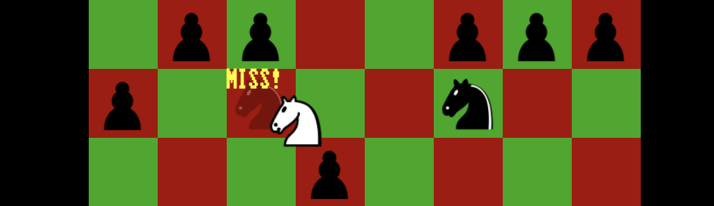 e4! e5! Nf3! Nc6! White knight captures black pawn! Black knight attacks white knight for 2HP of damage! White knight misses black knight! What the hell is going on?!
